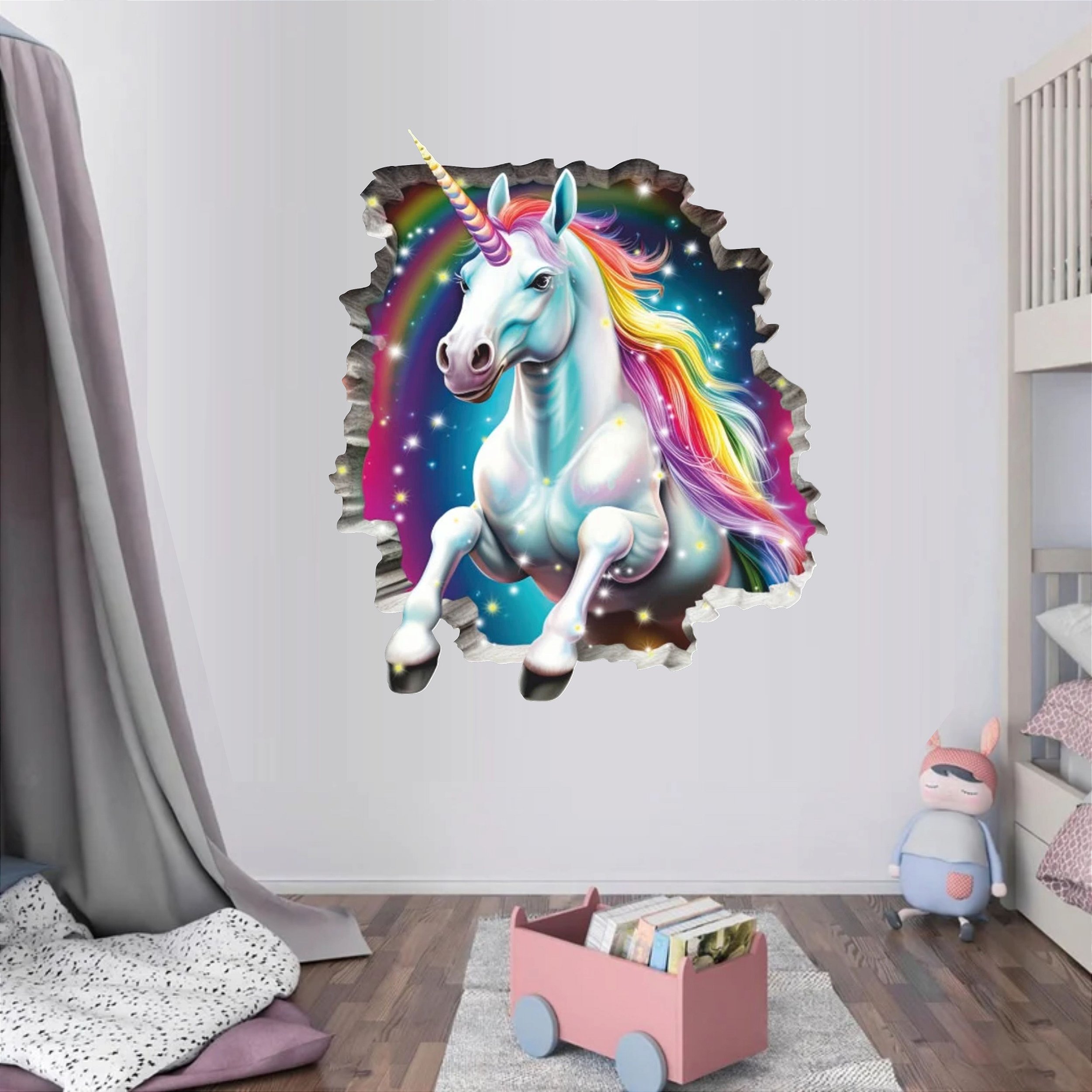 Adesivo Parede Unicornio Buraco 3D Infantil