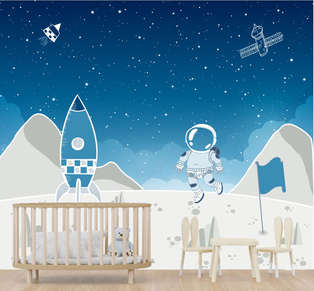 Papel Parede Adesivo Infantil Astronauta Espaço Lua color Baby M²